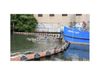 The Aquarius Systems Titan Series Trash Skimmer is designed to withstand harsh water environments and can collect and hold 500 cubic feet (14,15 cubic meters) of debris, or up to and 7,000 lbs. (3175 kg) by weight, and it can unload in 3 minutes.