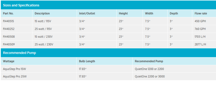 - INTERNAL STEP DESIGN Directs water back and forth across UV light tripling the contact time through the unit.