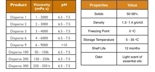 The Disperse line of anti-scalants is food grade and contains no animal products. They are of high purity and produce under sterile conditions. Disperse 1 is NSF certified. aquaTECH’s Disperse line is Summarized in Tables 1 and 2.