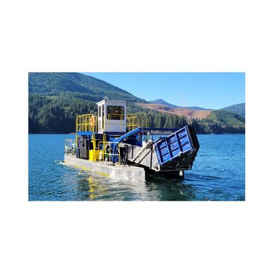 As unwanted debris is collected, it is conveyed on board and deposited in the generous storage hold. Complete instrumentation and hydrostatic hydraulics enable a single operator to manage all functions of the debris skimmer without coming into direct contact with the refuse. The adjustable collection flares enable the operator to clean out tight corners or large areas of debris.