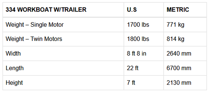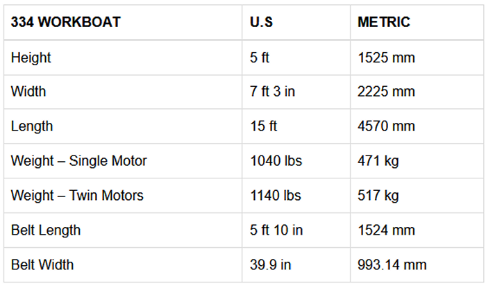 Fiberglass/Kevlar hull configuration includes Weedoo Conveyor/harvesting System with detachable bag collection assembly and Weedoo T-1305 highway boat trailer. Factory installed Weedoo 24-Volt PowerPack includes lithium/solar battery system that runs all day without fossil fuel, includes marine charger and captain helm station. Available in single or twin Torqeedo outdrives mounted on Weedoo Power trim-n-tilt system.