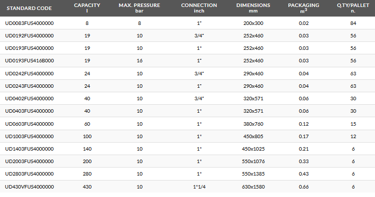 Aquavarem line from 8 to 280 liters. The Aquavarem tanks have a diaphragm membrane for potable water and an internal protection so that they can be used as pressure tanks for water booster systems and hot potable water.