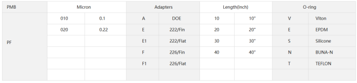 - EG: A 40 inch 0.22um filters with 226/Fin adapters and Viton O-ring