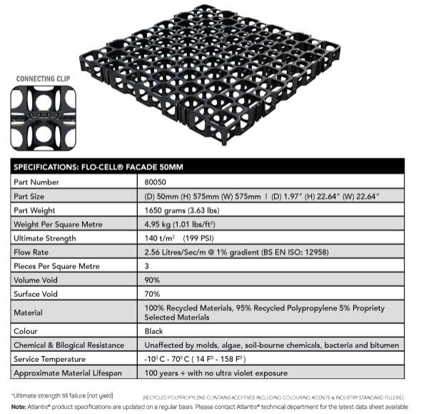 Experience the benefits of green walls with Gro-Wall® Façade – from improving air quality and reducing noise pollution to enhancing thermal insulation and promoting biodiversity. Our system prioritizes sustainability, utilizing recycled materials and efficient irrigation methods to minimize environmental impact. The 52mm Flo-Cell® component can be used as a trellis to support climbing plant species, creating a lush green facade, or as a standalone design element, enhancing the aesthetic value of any structure.