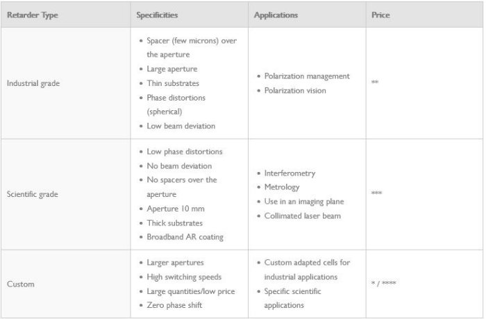 • Retardance temperature dependency : About 0.5%/°C (wavelength dependent)