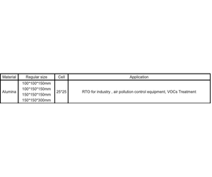 25 cells of Dense Alumina blocks is a Honeycomb ceramic heat accumulation substance, including ultra low-pressure drop media specifically designed for use in kinds of RTO (Regenerative Thermal Oxidizers) Volatile Organic Compounds (VOCs) and odorous emissions to recover thermal energy.
