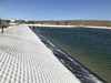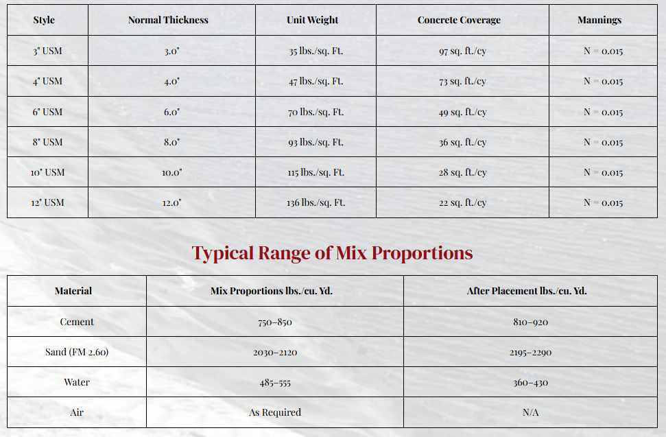 Form a lining of required nominal thickness, bonded cobbled surface, and specified weight to provide strength and erosion protection to resist the calculated tractive forces. The design criterion for the selection of lining thickness is the same as that used to determine the thickness of conventional concrete slope paving. Relief of hydrostatic uplift pressure may be provided by inserting plastic weep tubes through the mat at specified centers. USM is custom fabricated into multiple mill width panels, designed to fit actual site dimensions and topography.