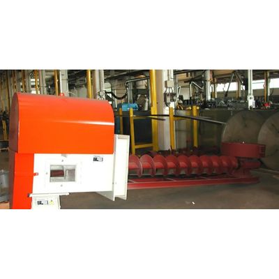Extraction system with spring steel arms that continually move the material inside a silo, and a worm conveyor to unload the material.