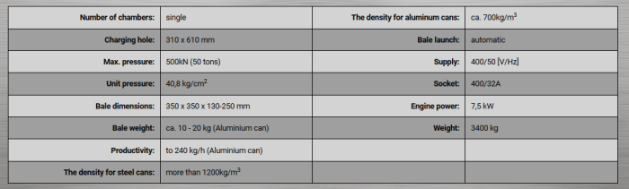 ARTechnic - Model PBPPs500-7,5 -Baler for Cans