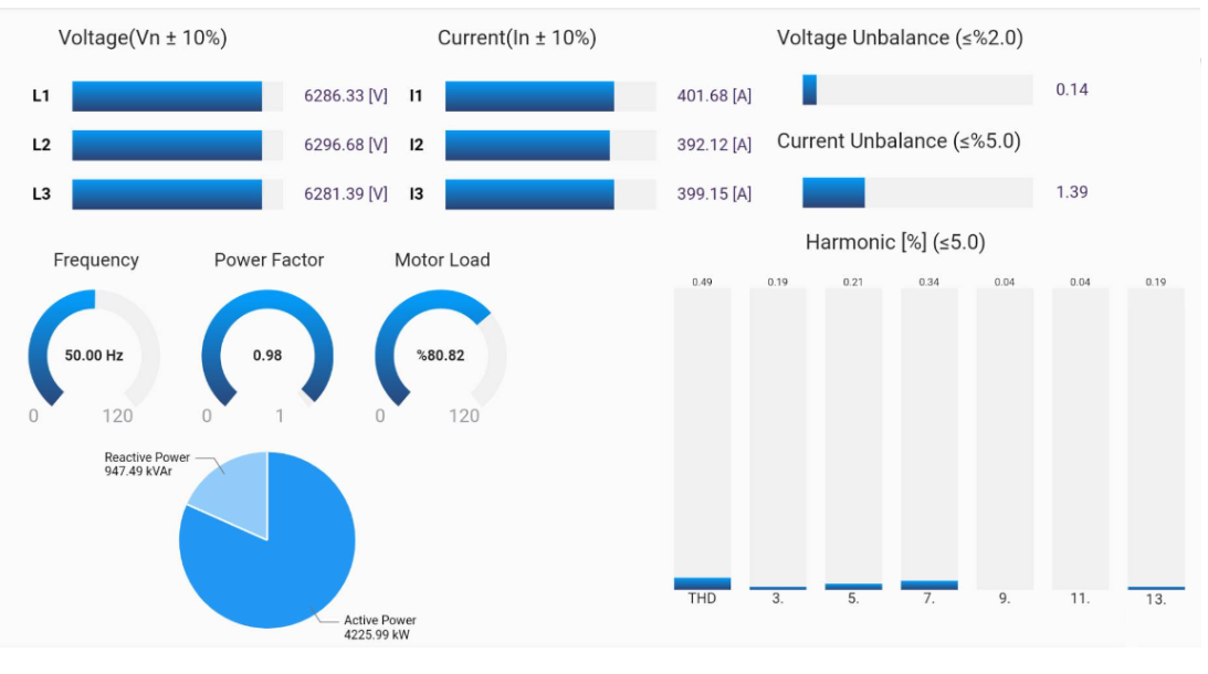 AMT Pro measures 3 phase Voltage and 3 phase current at 2500 Hz sampling rate.Motor tests are completed in 7 minutes. yielding to an automatic test report indicating motor health with barcharts, list of electrical parameters and PSD (Power Spectral Density) results. The test results simultaneously sync to the secure cloud-based server allowing access to the reports on an IoT platform.