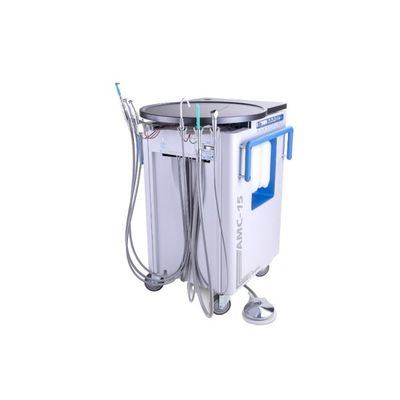 Designed for Easy and Affordable Mobility, the AMC-15 Mobile Dental Cart is equipped for general dentistry with two automatic high speed air connections, one low speed handpiece connection, internal vacuum and air, water supply, large waste tank with automatic overflow protection, and amalgam separator.