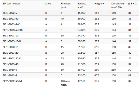 SF EDM filter cartridges to clean the dielectric fluid of work-piece and electrode abrasion. Filter medium: cellulose. Style A: plastic end plates with gaskets and recessed grips. Style B: metal end plates with gaskets and one montage clamp.