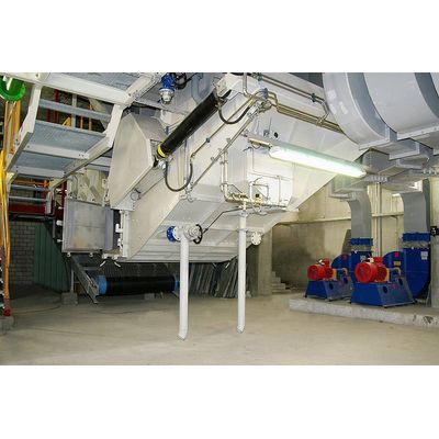 The ash discharger is a well proven design. The drive is made by two hydraulic cylinders attached to a pusher which transfer the slag out of the water bath. The internal surfaces are lined with changeable wear plates, in order that they can be replaced if necessary, during a routine maintenance period.