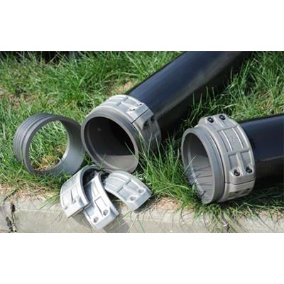 The circular woven filament polyester reinforcement ensures very high tensile strength and facilitates easy towing with tractors without risk of damage. The interlocking weave prevents the hose from lengthwise extension when pulled or pressurized. This avoids delamination of cover or lining from the woven reinforcement and minimizes "snaking" and twisting.