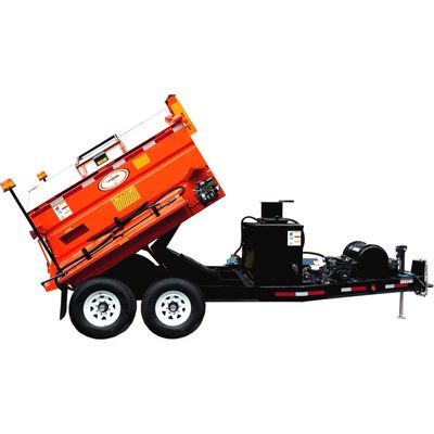 Electronically actuated, hydraulically hoisted dumping hotbox. Self-contained or remote powered hyddraulic driven power spray systems. Hydraulic-driven asphalt pump. Hydraulic control valve for pump operation. Reverse function system clean-out. Adjustable flow control for variable pump speed. System wash-out tank. On board, engine-driven hydraulic pump. Adjustable on board crane with asphalt roller. Propane-fired hand torches & tank mount. Collapsible arrowboard.