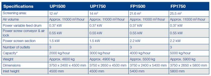 Eldan - Model UP1500 / UP1750 / FP1500 / FP1750 -Aspirator for Tyre Recycling