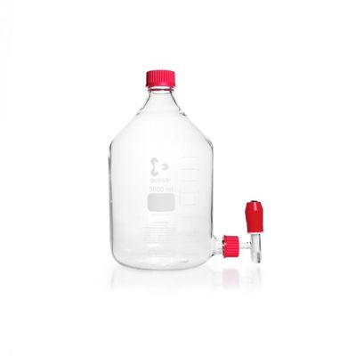 DURAN® Aspirator (levelling) Bottle, with GL 45 screw cap (PBT, red) and GL 32 bottom stopcock (glass, PTFE), 5000 mL; Aspirator laboratory bottle with screw closure, complete with PTFE key stopcock and GL 45 red PBT cap.