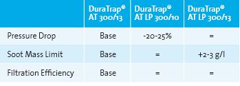 Corning DuraTrap AT LP 300/10 and Corning DuraTrap AT LP 300/13 filters are designed with a lower porosity and optimized microstructure to enable product designs for low pressure drop or high soot mass limit.