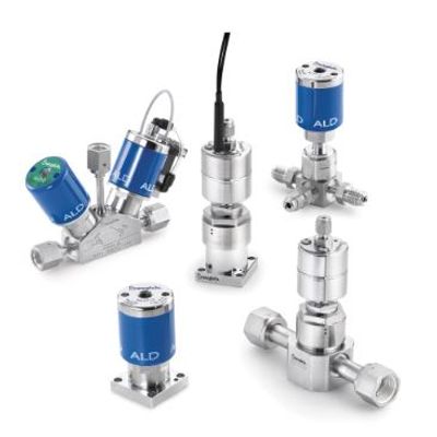 ALD diaphragm valves offer ultrahigh cycle life, high-speed actuation, and flow coefficients up to 0.62, along with thermal actuators, position sensors, and solenoids for optimal performance in atomic layer deposition applications.