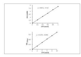 - Applications- The assay can detect as low as 50 picomol (1 μM) of ATP in various samples.