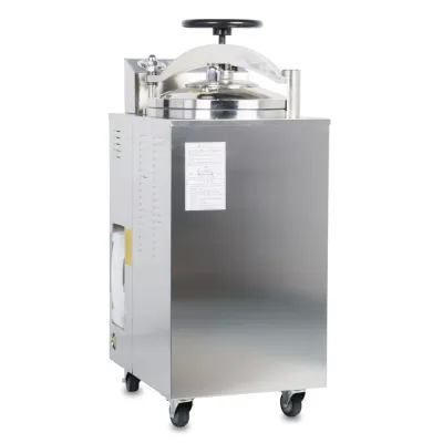 Made of SUS304. Handwheel type quick-open cover. Microcomputer intelligent control. Self expanding type seal ring. Exhaust cold air automatically. Inner circulation exhaust. Self-control when lack of water; Self-exhaust when over pressure; Pressure safety interlock; Over temperature protection. Buzzer reminds when sterilization ends. Equipped with G1/2A internal thread sample test hole.