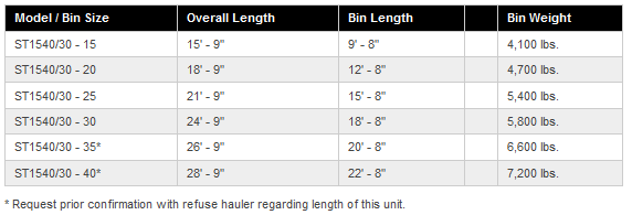 Sanitech auger compactors pre-crush and compact in one powerful motion. While processing material, the auger continuously runs in a forward direction, crushing and reducing the size of what it is fed. This enables it to compact up to five times faster than conventional hydraulic compactors. The Model ST-15-40/30 & ST-15-40/30-IN are designed to provide the highest density (tonnage) bin loads processing trash, waste and recyclables. The Model ST1540/30IN (Industrial) has a longer / stronger auger shaft, heavier gearbox and bearings. It is designed to handle a steady stream of large and bulky materials.