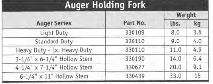 This fork is used to support the auger string when disconnecting or withdrawing flights from the hole. Holding forks are available for all types of augers and service.