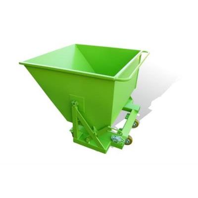 Capacity : 230 or 390 litres. Bin : 2 mm sheet metal. Chassis : 4 mm sheet metal. Rubber bumper dampens end of tipping process. Safety chain included. Fork sleeves can be modified on request. Pedestal-mounted models (cannot be used with pallet trucks). Castor-mounted models (forward movement) have a handrail and Ø100 mm alu/polyurethane castors. 230 L : 2 fixed + 1 pivoting.. 390 L : 2 fixed + 2 pivoting.
