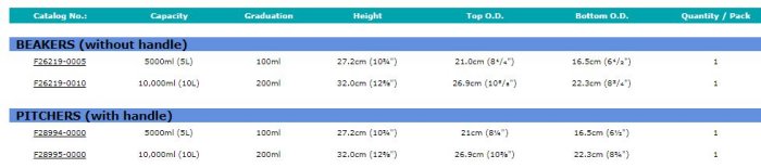 These graduated beakers feature flared rims and spouts for quick, easy pouring when large volumes are handled. Polypropylene plastic construction; good chemical resistance. Steam autoclavable at 121ºC (250ºF).
