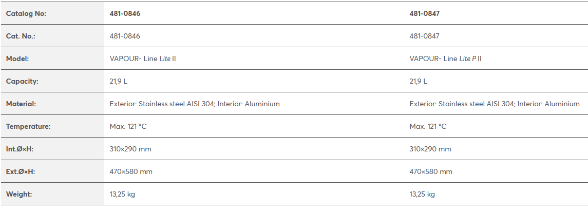 Autoclave for occasional use. AISI 304 stainless steel housing, easy to maintain and disinfect, aluminium inner chamber and ABS insulating lid with locking system.
