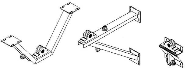 The AUTOFLUSH solids removal devices are designed for quick and easy installation in new or existing tanks. They may be designed with one of three different support systems which may be fixed to the tank structure using either the back-wall, the side walls or the roof slab of the tank. The supports may be fixed in place using either HALFEN™ anchors (for new installations) which permit for horizontal adjustments or chemical anchors (for existing installations) which may be accurately installed into existing concrete. The supports are designed so that they are shipped ready to install and all bolts, nuts, washers, etc. necessary for a proper installation are also supplied. All support items are supplied in stainless steel 304 and are specifically designed for each device size and installation type (back-wall, sidewalls or roof slab). The different three types of support are shown in the following figure.