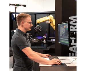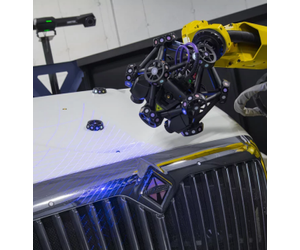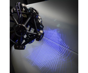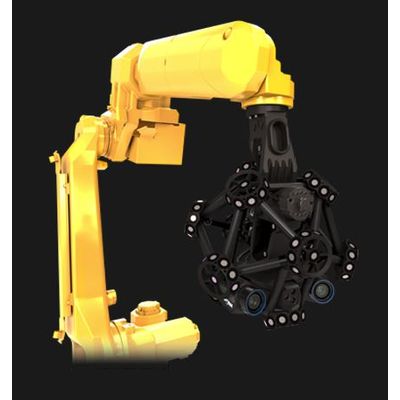 Combining the power of optical and blue laser technologies, the MetraSCAN 3D-R has the capability to both generate highly efficient 3D scans on shiny surfaces or on objects with variations in reflectivity and measure various part sizes and different surface geometries. The MetraSCAN 3D-R is available as a custom solution with an industrial robot or as a completely turnkey measuring solution with Creaform`s CUBE-R.