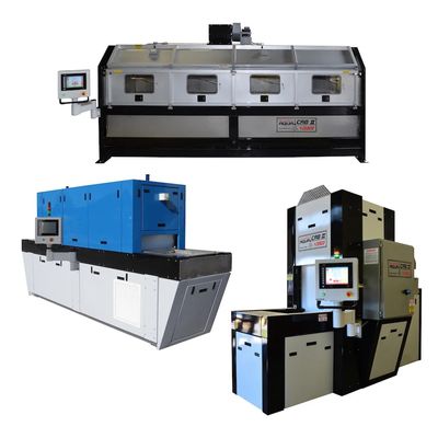 The AQUA CAB line of automated waterjet blasting and cleaning systems removes corrosion, coatings, and residue and deburrs and polishes for a like new finish – while eliminating operator fatigue associated with hand held wands. Filters solid and airborne contaminates. Water blast cabinets accept a variety of part sizes and are fully adjustable including system pressures and traverse rates. Built in cooling systems are designed to stress, relieve and hold specific tolerance. Systems are equipped with a touch screen operator interface that communicates directly with the AQUA MISER® ULTRA BOSS water blast unit for full control of system processes. Compatible with our closed-loop filtration system.