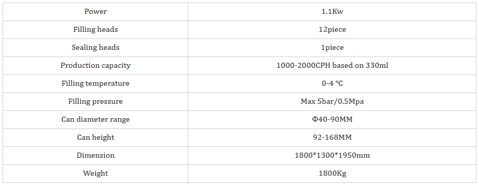Mic 12-1 automatic beer canning machine adopts isobaric pressure filling system which is applicable for beer (Cold filling temperature at 0-4 degrees Celsius). Automatic beer canning machine is in the digestion and absorption of advanced foreign and domestic sealing machine on the basis of independent development of the can filling, sealing unit. Filling and seaming part is the overall designed, in order to ensure that both the absolute synchronization and coordination.