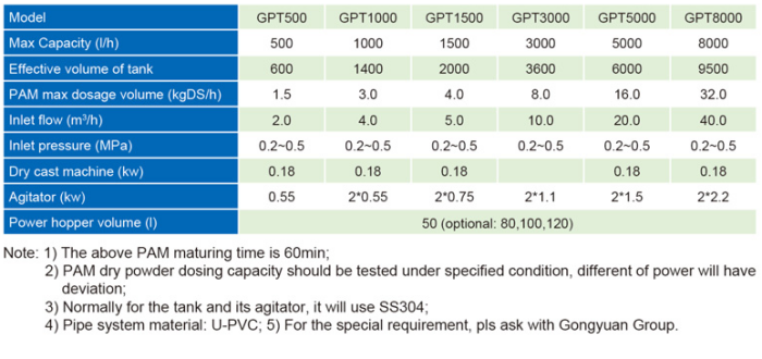 GPT type automatic chemical dosing system is mainly used for preparing and adding PAM agent continuously. It is an important part of sludge dewatering system.