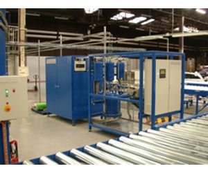 The compressor unit is then transported to the degassing unit. In this unit the compressor is automatically positioned and after that degassed and drained of oil. Up to 3 compressors can be degassed at once. The whole degassing process takes no more than one minute.