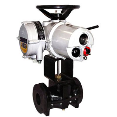 Pre-pinched Port. Mechanically Pinched. Single Pinch Mechanism. Simple Economical Design. Clog resistant full round opening. Low pressure drop. No packing. Drop tight closure. On/Off or throttling service. Long lasting compression molded sleeve. High efficiency stainless steel ACME stem for easy operation. Complete motorized actuator includes starters, power supply, limit switches, auxiliary Hand wheel, push buttons and selector switch. Valves come fully assembled, calibrated and tested for plug & play operation.