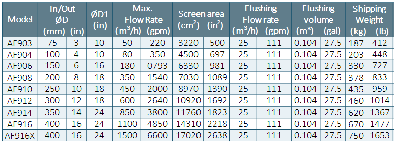 Screen filter with automatic electric flushing. Heavy duty for most industrial and municipal applications.
