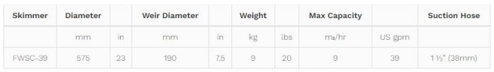 - Detachable floats- Allows the skimmer to be dis-assembled for transport and storage or to allow access in confined spaces.