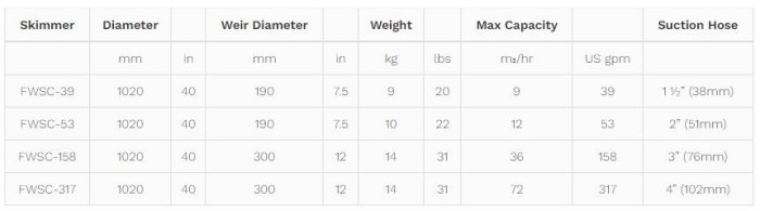 - Debris screen kit- Prevents floating debris blocking and choking the skimmer suction.