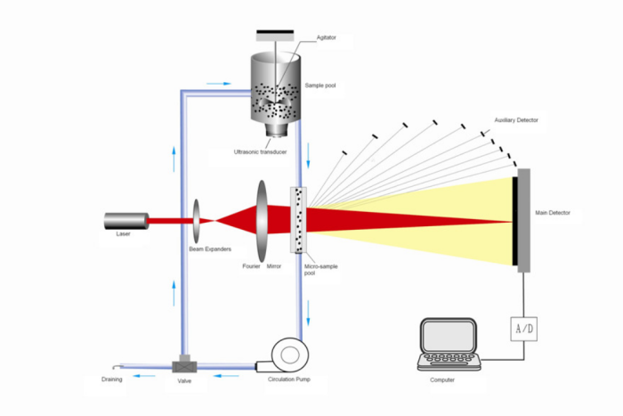 Winner patented technique of Fourier transform of converging light released the scattered light at large-scattering angles from the restriction of the aperture of the Fourier lens. The focal length is reduced to enhance the resolution of the instrument.