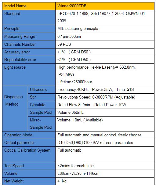 Winner2000ZDE intelligent laser particle size analyzer, adopt MIE scttering principle,perform auto test, auto optical path alignment, auto water supply, auto drainage, auto bubble removing, auto ultrasonic dispersion, auto cleaning etc., really realize one-key operation. It adopt full built-in sampling system, effectively prevents large particles sedimentation problems in the circulation pipeline, ensure good accuracy. It adopts comprehensive Laser diffraction particle size measurement principle with highly sensitive ring photoelectric detector improving the test accuracy greatly, Original designed unconstrained free fitting software technology, a true reflection of the particle size distribution, to ensure truth and accuracy of the test results. Therefore especially suits the laboratories of enterprises, colleges and universities and research institutes to use.
