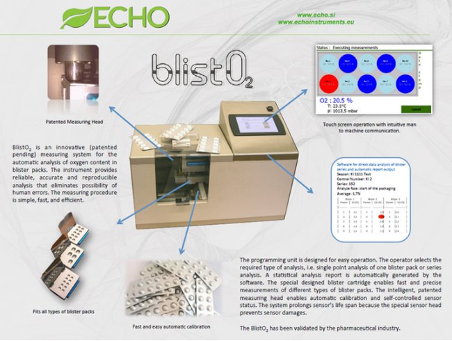 BlistO2 is an innovative (patent pending) measuring system for automatic analysis of oxygen content in blister packs. The analysis is accurate, reproducible, and eliminates the possibility of human errors.