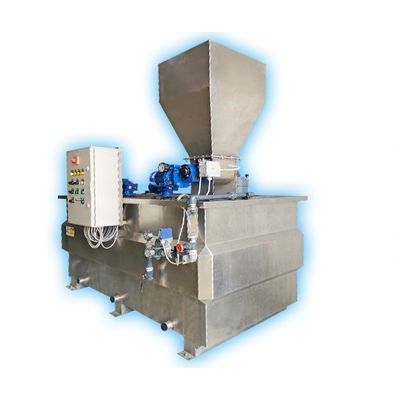 PolyPreDos by Panta Rei is a simple and efficient device, made of stainless steel AISI 304, designed to prepare liquid polyelectrolyte solutions having variable concentrations according to the process characteristics required. The polymer emulsion is pumped, by a special screw pump with variable flow, to a dedicated primary mixing system. Afterwards, the solution reaches inside the stainless steel tank, where an agitator mixes the emulsion properly. A second progressive cavity pump carries out the final product dosing.