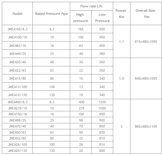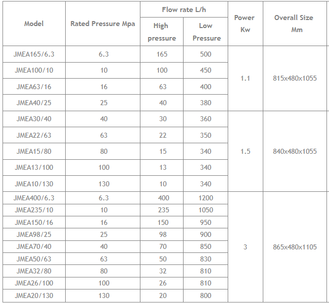 JMEA Automatic electric test pump is our patented product in the year of 1990. It has 4 working cylinders with 2 high pressure cylinders with low flow rate, and 2 low pressure cylinders with high flow rate. All the four cylinders are working at the beginning and the 2 low pressure cylinders with high flow rate stop working when the pressure is higher than 16bar which assure the pressure of hydro testing to be safe and steady. Considering the safety of the operator, we had installed safety valve and pressure controller. We could supply you with remote when the pressure is higher than 40Mpa. You could start and stop the electric test pump at the distance within 100m from the pump.