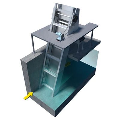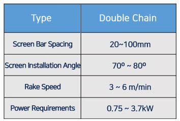 Double chain type automatic screen is installed at the influent channel of wastewater treatment plant, drainage/stormwater pump station, intake facility, irrigation ditch, and sewage treatment plant. Multiple rakes that are attached to chains rotates around a central pivot of the screen and lift the debris captured/collected by the screen and discharge into a conveyor. This design allows not only to maintain the constant flow but also continuous removal of debris.Compared to rotary type automatic screener, double chain type automatic screener needs to remove smaller size debris so it is equipped with scrapper