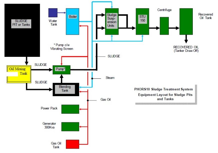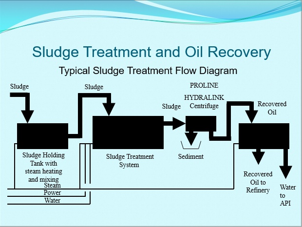 - Purpose built, heavy duty two phase Centrifuge to remove solids from the pre treated sludge and reclaim good quality oil suitable for pumping directly back to refinery storage facilities.