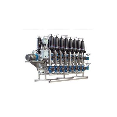 The filters come complete with or without a pump - all packaged on a stainless steel skid assembly. Filter systems are designed with a modular approach; multiple filter housings (pods) are manifolded together with stainless steel inlet/outlet manifolds. An onboard controller monitors the differential pressure across the filter, triggering an automatic backwash when dirty. Filter lid enclosures have a stainless steel quick-release band clamp assembly, enabling easy access to the disc cartridge for maintenance purposes.