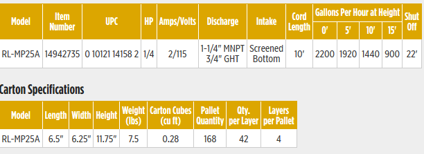 Ideal for general water transfer applications and household water removal in places like basements, crawl spaces, rooftops, and other areas where automatic operation is required. This pump activates in 3 minute intervals to detect if water is present. If water is present, pump will continue to operate until water is removed.