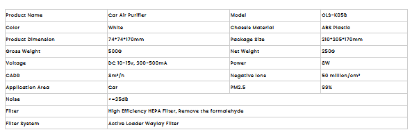 Olansi - Model K05B -Automobile Vehicle Portable Air Purifier